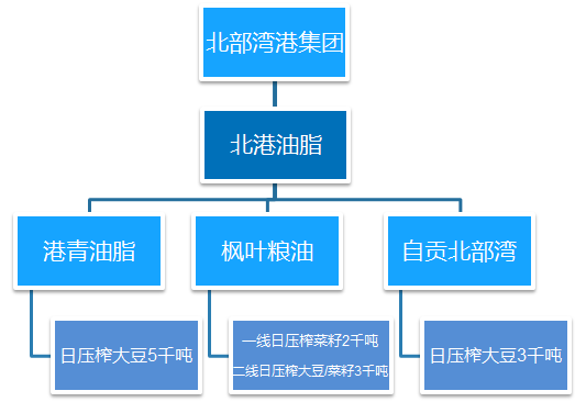 廣西北港油脂有限公司(簡稱:北港油脂)是隸屬廣西北部灣國際港務(wù)集團(tuán)有限公司的全資子公司,旗下有廣西港青油脂有限公司、防城港楓葉糧油工業(yè)有限公司、自貢北部灣油脂工業(yè)有限公司三家油廠,年可加工植物油料約420萬噸,可實(shí)現(xiàn)年產(chǎn)值約100億元;主要生產(chǎn)豆油、豆粕、菜籽油、菜籽粕等產(chǎn)品,打造和培育“裕楓”、“興港”等菜粕、豆粕品牌,編織一張面向國內(nèi)外銷售的“大網(wǎng)”,積極發(fā)揮集團(tuán)資源優(yōu)勢,不斷壯大北部灣港集團(tuán)的油脂產(chǎn)業(yè)鏈以及提高集團(tuán)油脂板塊的區(qū)域影響力。